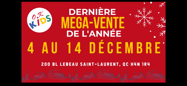 The OK KIDS mega warehouse sale is back from December 4th to 14th, 2025! Huge selection of clothing and accessories for children ages 0 to 16. Come see our new holiday merchandise!