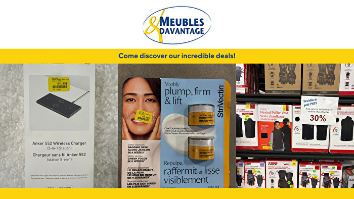 At Meubles & Davantage, enjoy surplus from major chains at 30% to 50% less! Furniture, appliances, clothing, sports gear, food and more. Regular new arrivals. First come, first served! Come save more!