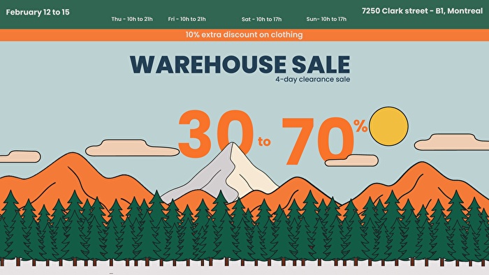 Warehouse Sale at Marché Alpin from. Enjoy exceptional discounts of 30% to 70% plus additional savings on thousands of products. A wide selection of clothing and equipment to help you enjoy winter!
